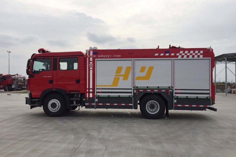 车辆底盘为ZZ5207TXFV471GF5底盘,发动机型号MC07H.35-60,功率为257kw,国六排放标准,轴距4500mm,罐体材质采用采用优质304不锈钢板,容罐容量:水3600kg+B类泡沫900kg+A类泡沫200kg;消防泵为KSP1000(美国大力);压缩空气泡沫系统:品牌:美国大力,型号:KSPBC1000/220型,型式:全自动集成式压缩空气A类泡沫系统,消防炮为PLKD48手动及电控,升降照明系统YZH6-4.83CFA,牵引绞盘系统为杭州天铭FHW16500。